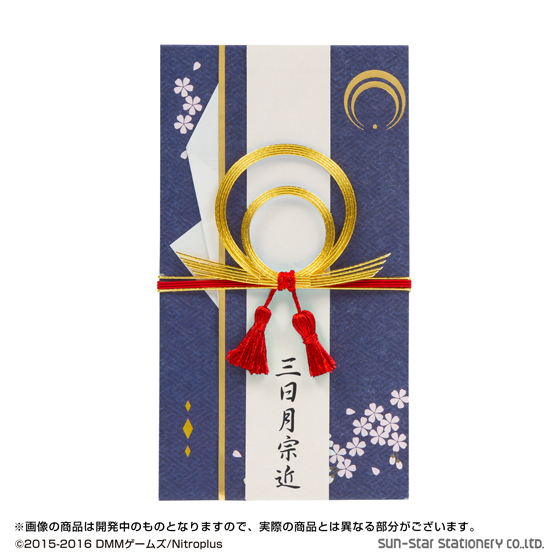 ゲーム『刀剣乱舞-ONLINE-』より、刀剣男士の装いをモチーフにデザインされたご祝儀袋が登場。ラインナップは三日月宗近、鶴丸国永、一期一振の3種で、2016年6月3日(金)13時より予約受付が開始される。