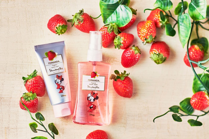 ディズニーストアから発売するいちごモチーフのオリジナルアイテムと同様にミニーマウスのアートを用いた本商品は、FERNANDAにこれまでなかった、“ストロベリーキス”という名前がついたいちごの香りの貴重な商品になっている。