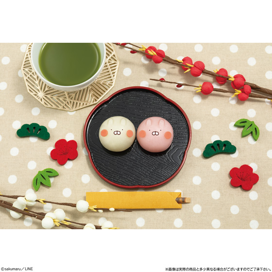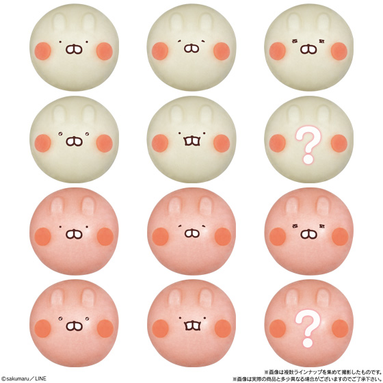 今回は、ぷにぷにのもち生地を使って表情豊かな“うさまる”と“うさこ”を再現。どちらも丸くて赤いほっぺはそのままに、表情はいつものノーマル顔からちょっと変わった表情まで、シークレット各1種を含めたそれぞれ6種類ずつをラインナップ。組み合わせはランダムで全36通り、どの“うさまる”と“うさこ”に会えるかは店頭でのお楽しみ。
