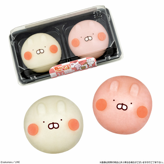 丸いもち生地の中に餡やクリームを包んだ『食べマスモッチ』シリーズ。その第5弾として、LINEスタンプなどで人気のゆるく可愛くときたまシュールなうさぎの“うさまる”が登場。“食べられるマスコット”の名の通り、すべて食べられる素材でできている。