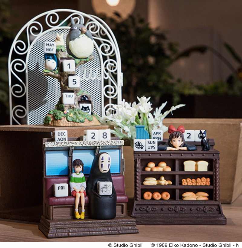 どんぐり共和国で人気のインテリア商品、万年カレンダーがニューモデルで発売。『となりのトトロ』、『魔女の宅急便』、『千と千尋の神隠し』の3作品を細部までこだわり造形した、立体の万年カレンダー。曜日や日付のコマは自由な位置に置くことができる。