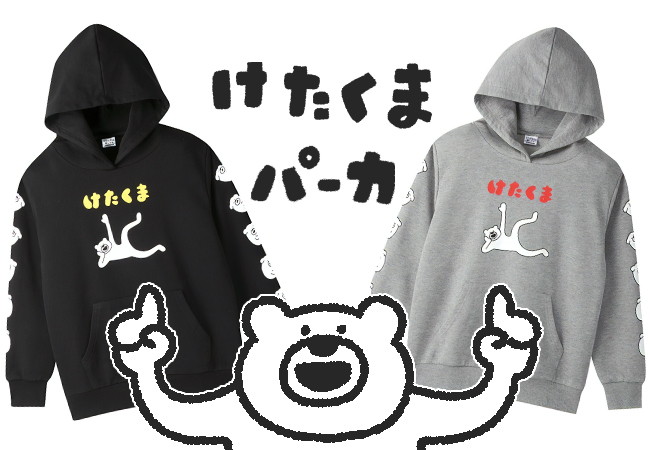 LINEスタンプで人気のキャラクター『けたたましく動くクマ』(略称:けたくま)の限定オリジナルプルパーカが、しまむらにて1月18日より発売される。