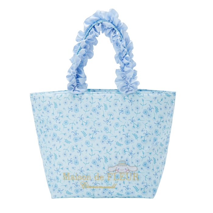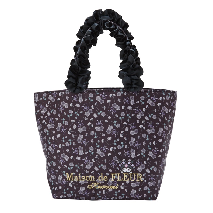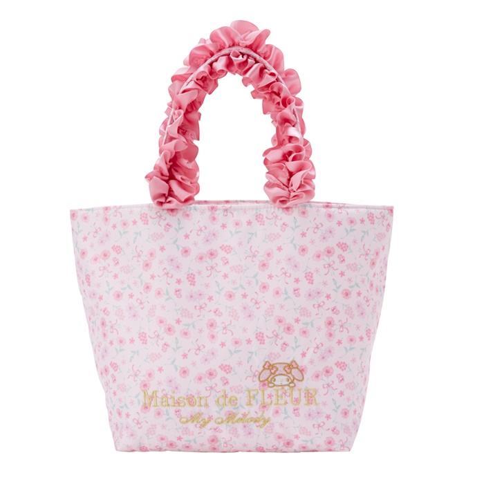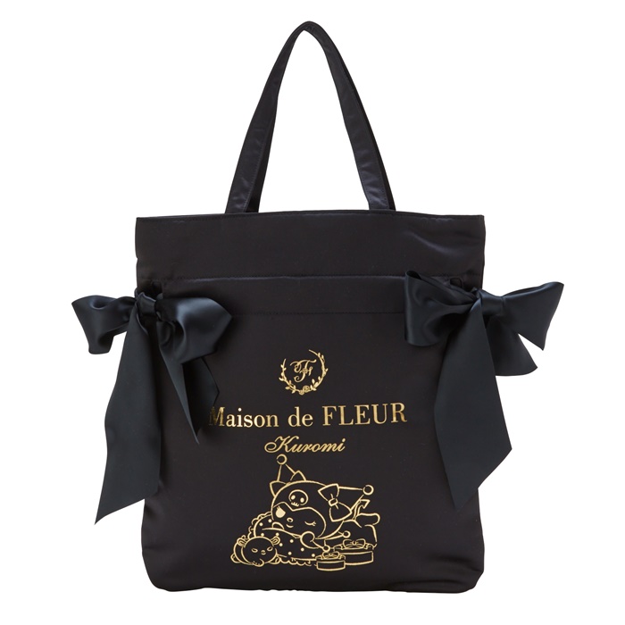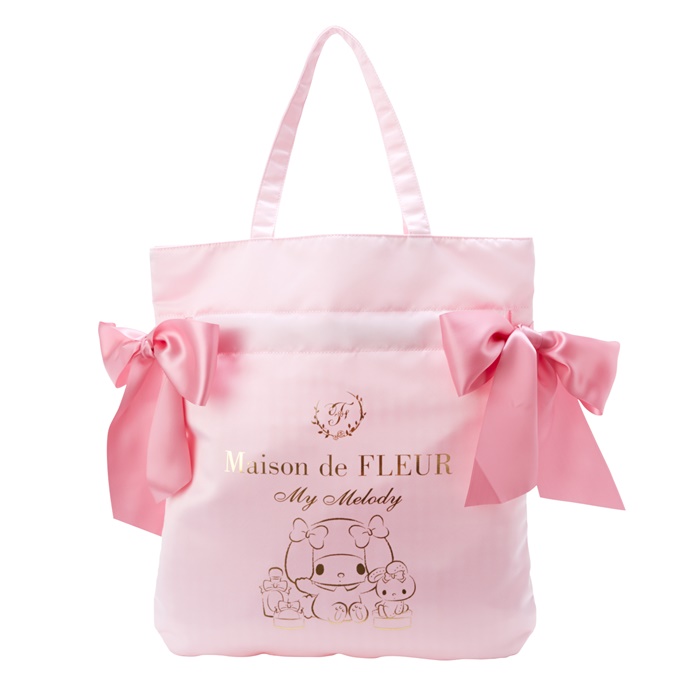 『Maison de FLEUR』のアイコンであるリボンのついた“トートバッグ”や“ポーチ”、“プチタオル”には、コラボレーションのロゴやキャラクターがゴールドで刺繍・プリントされており、フリルの持ち手がかわいい“手提げバッグ”には、可憐な花束が散りばめられている。