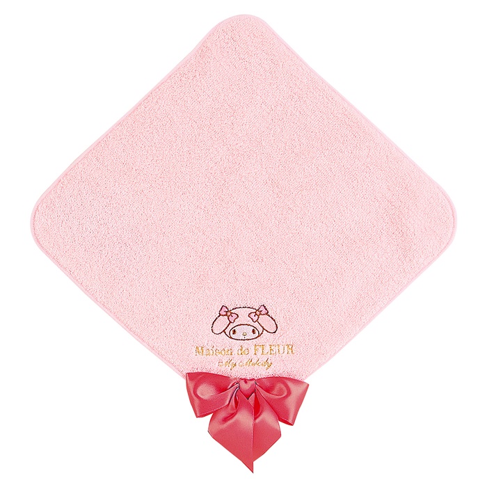 サテンリボン付きのプチタオル。サイズ:約24㎝×24㎝