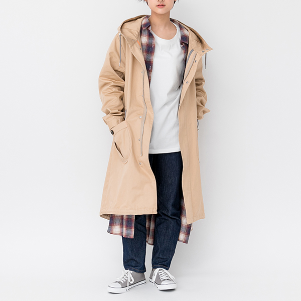 着回しが利くユニセックスなフーデットコート。ボタンのデザインやポケットのフォルムに至るまで、ニャンコ先生の可愛さが表現されている。ウエストや裾のひもをきゅっと絞ればシルエットを変えられる優秀アイテム。