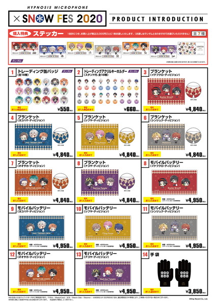 北海道札幌市で2月4日(火)から11日(火・祝)にかけて開催される「第71回さっぽろ雪まつり」内にて、『HYPNOSIS MICROPHONE × SNOW FES 2020』が実施。この度、物販ラインナップが発表となった。