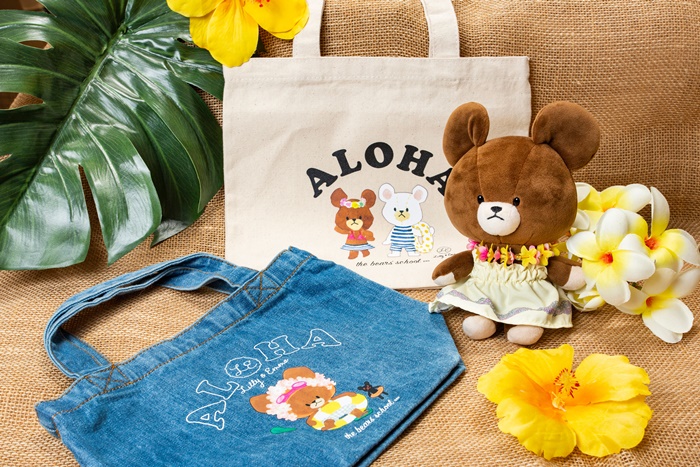ハワイをイメージしたムームードレスのぬいぐるみジャッキーと『くまのがっこう』ならではの繊細で鮮やかな水彩画を用いたトートバック2種を発売。