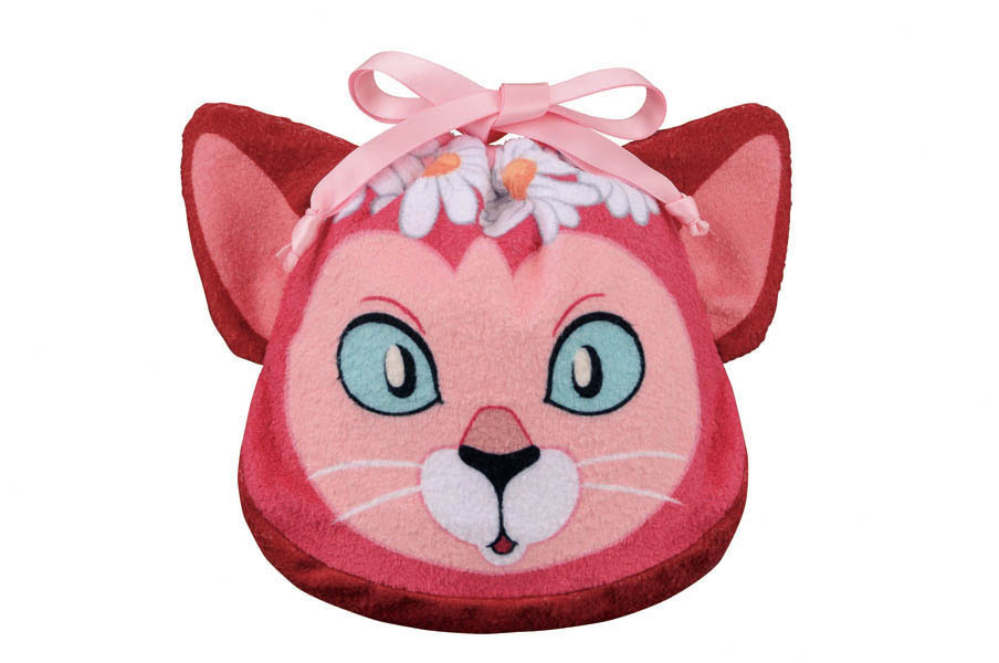 アリスの飼い猫「ダイナ」をデザインした、巾着タイプのポーチ。ふわふわ生地を使用。
