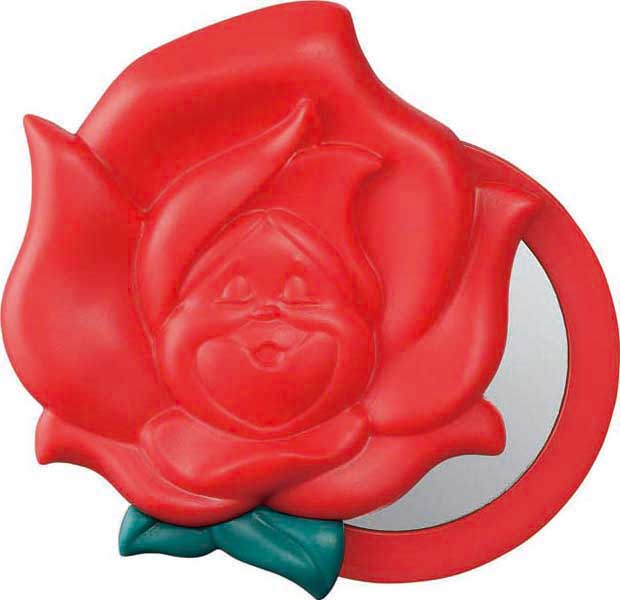 物語に登場する、喋る花のバラとタンポポをデザインしたスライドミラー。