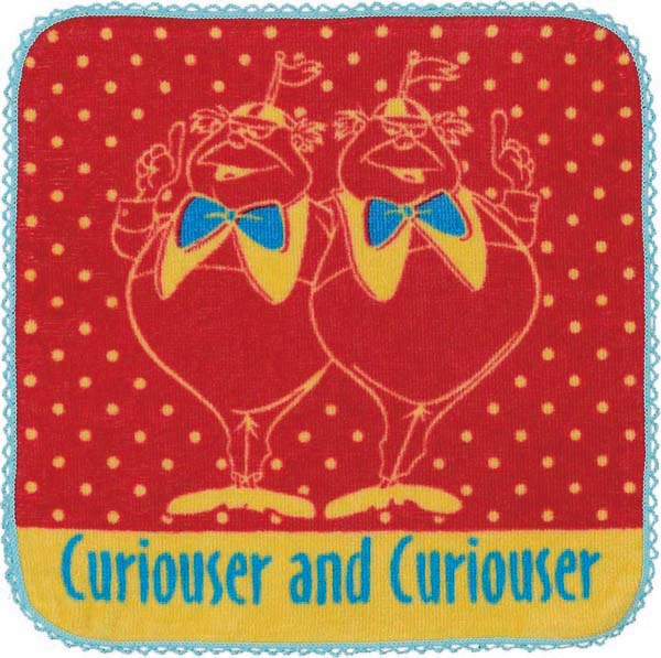 「アリス」「ドーマウス」「双子のディーとダム」をデザインしたハンドタオル。
