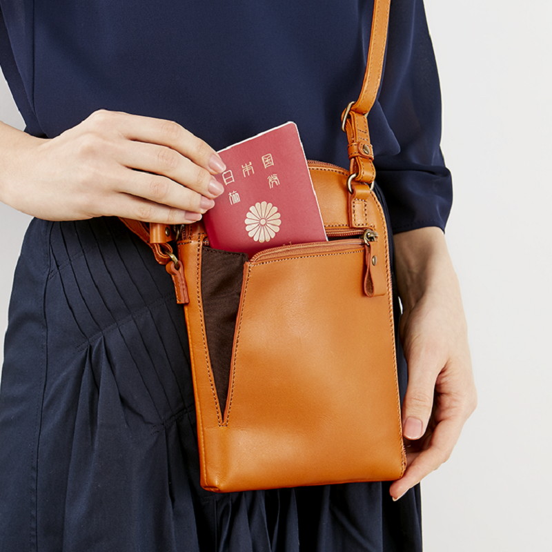 やさしい革の風合いと手の込んだレザーワークが、大人の上質カジュアルにさりげなくマッチ。こだわり満載の、記念すべき年にふさわしいポシェットとなっている。