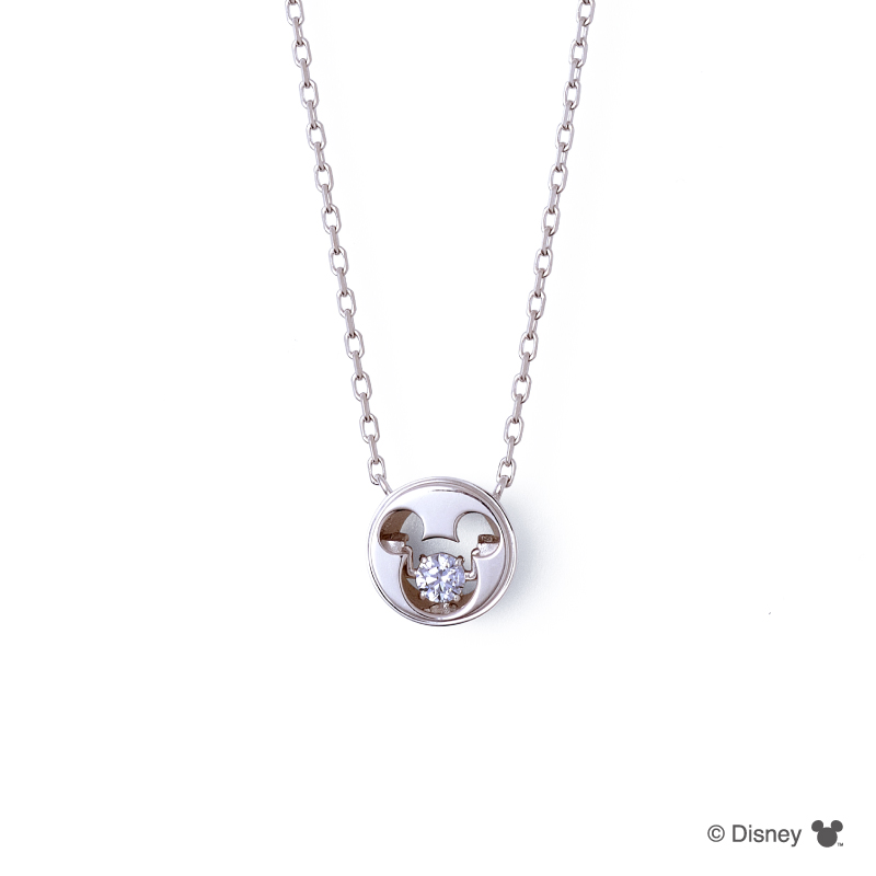 シンプルなフォルムにミッキーアイコンが目を引くネックレス。 アイコンの中には、特殊なセッティングにより揺れ続けるストーンが美しい輝きを放つ。サイドにもさりげなくミッキーアイコンが隠れた遊び心のあるデザイン。見つめるたびにHAPPYな気持ちになれるデイリー使いにもおすすめ♪