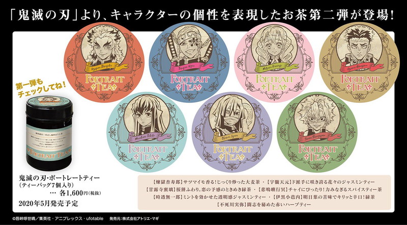TVアニメ『鬼滅の刃』に登場するそれぞれのキャラクターをイメージしたフレーバーのティーバッグが缶に入ったお茶が発売。ヴィレッジヴァンガードオンラインで取り扱い開始となった。