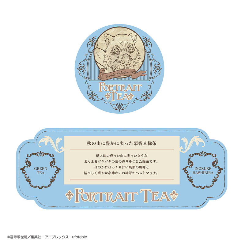 秋の山に豊かに実った栗香る緑茶。伊之助の育った山に実ったようなまんまるツヤツヤの栗の香りをつけた緑茶。ほのかにほっくり甘い焼栗の風味と清々しく爽やかな味わいの緑茶がベストマッチ。