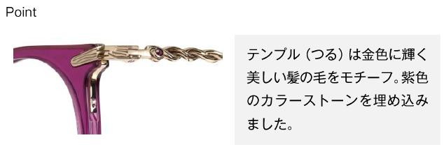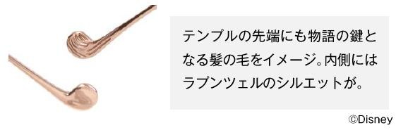 “探究心と豊かな想像力を持つプリンセス”ラプンツェルをイメージしたシリーズは、金色に輝く美しい髪の毛をモチーフにしたサイドがポイント。トレンドのオールメタルのテンプル(つる)で軽やかに。