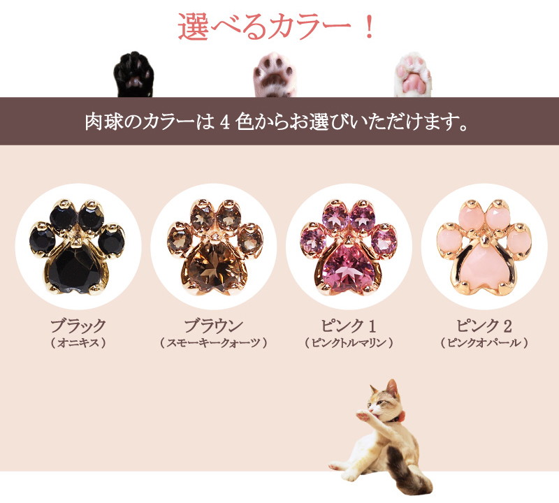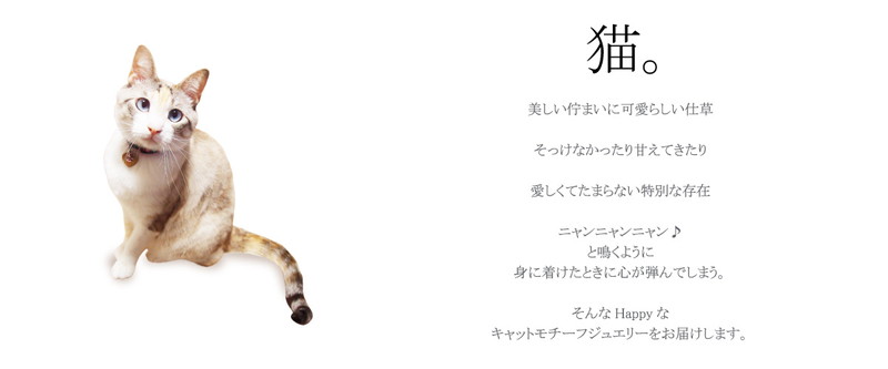 肉球のカラーが選べるジュエリーだけでなく、アイカラーやボディカラーが選べるなど、多くの愛猫家ユーザーから指示されるセミオーダーオリジナルジュエリーを中心に展開されている。