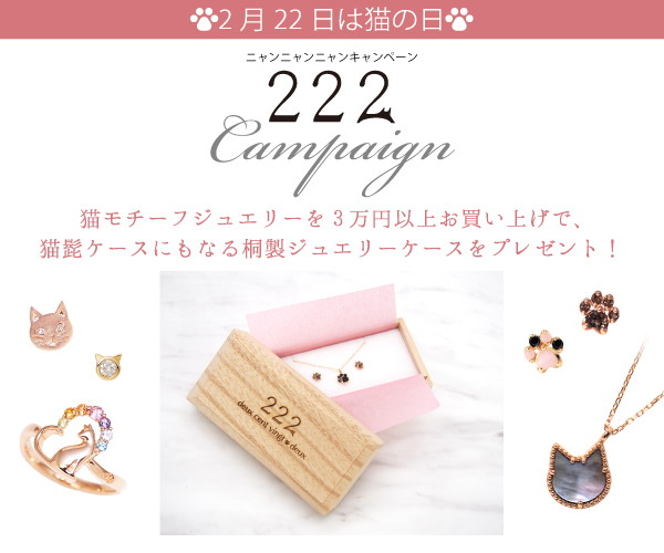 ジュエリーブランド“222 deux cent vingt-deux(ドゥサンヴァンドゥ)”より、2月22日の“猫の日”にキャンペーンが開催される。