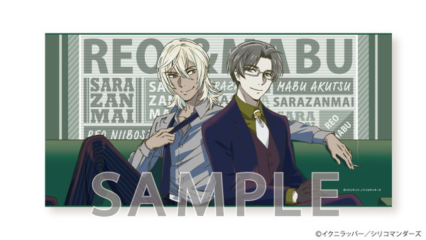スーツ姿の玲央と真武の描きおろしイラストを使用した、 肌触りの良い綿素材のタオル。