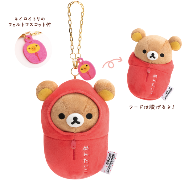 一方、リラックマストア福岡パルコ店からは、福岡名物めんたいこになりきったリラックマのぬいぐるみが登場。ぶらさげタイプとなっているので、カバンに着けるなどして楽しんでいただきたい。