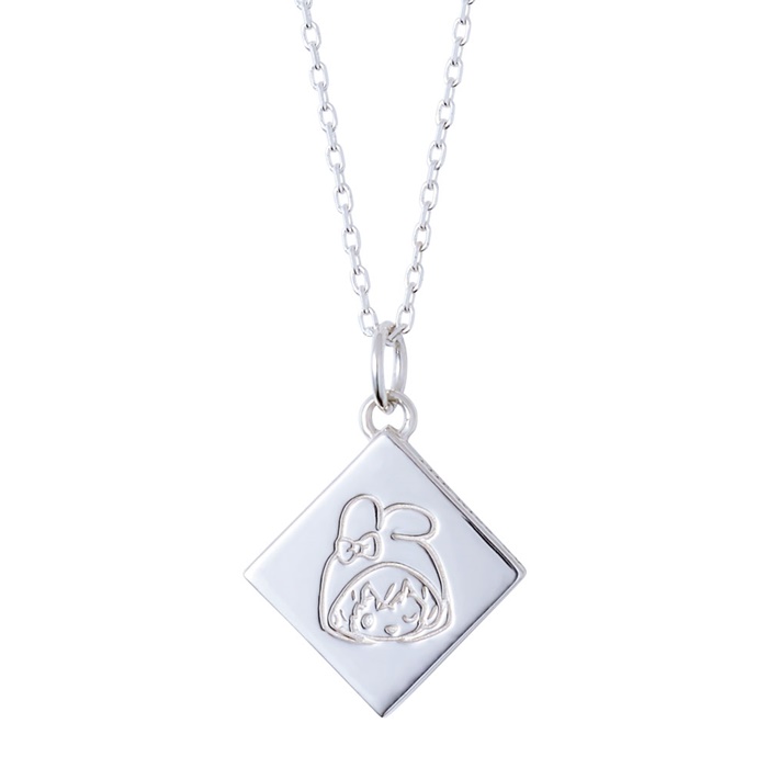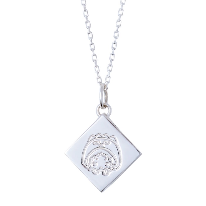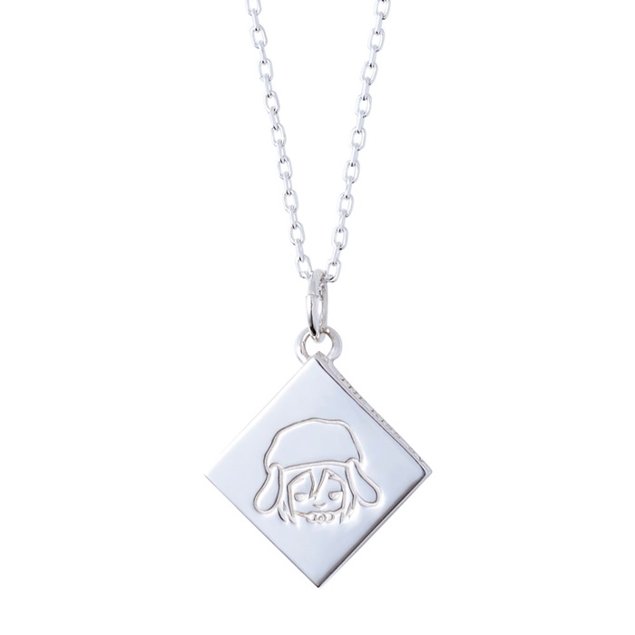 キャラクターイメージカラーの菱形模様とストーンをセットしたプレートに“太宰治×マイメロディ”の刻印を施し、スタイリッシュに仕上げた。