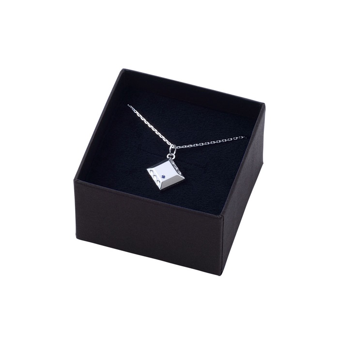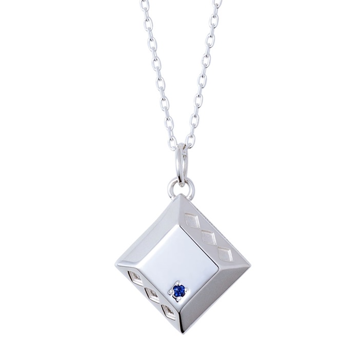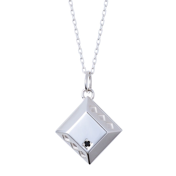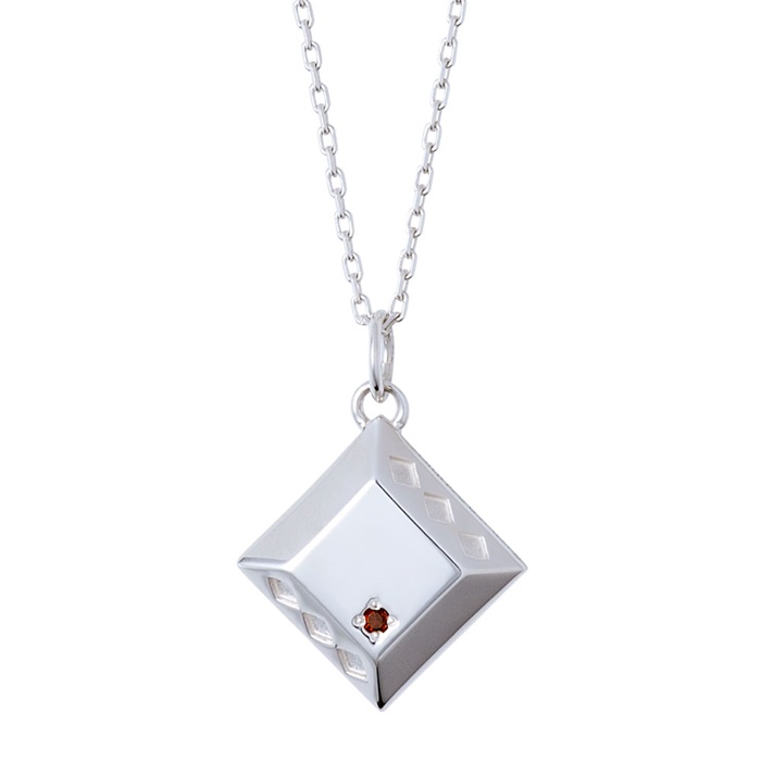 菱形模様を施したスタイリッシュな印象のプレート。表面は“太宰治”のイメージカラーストーンをセットし、裏面はフェイスアイコンを刻印。リバーシブルで楽しめるジュエリー。