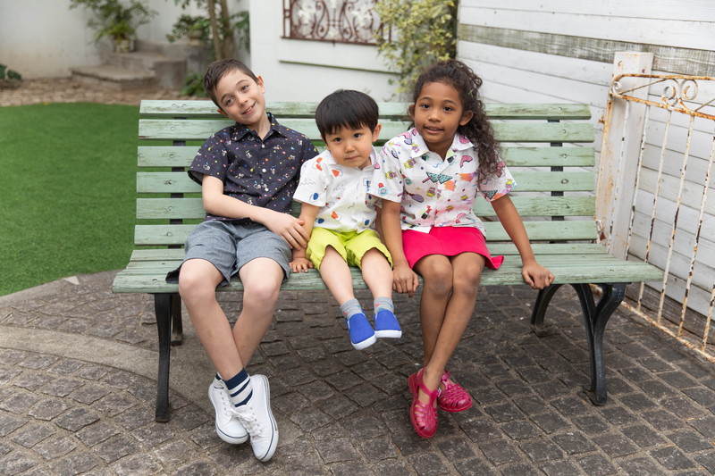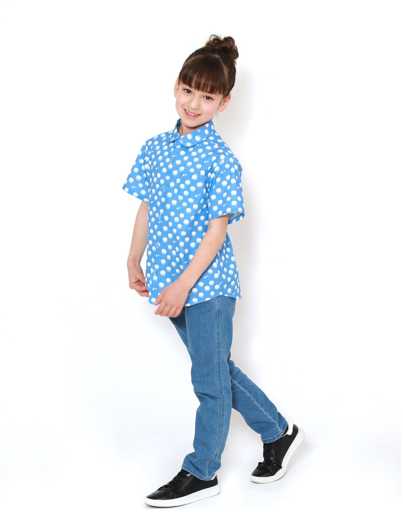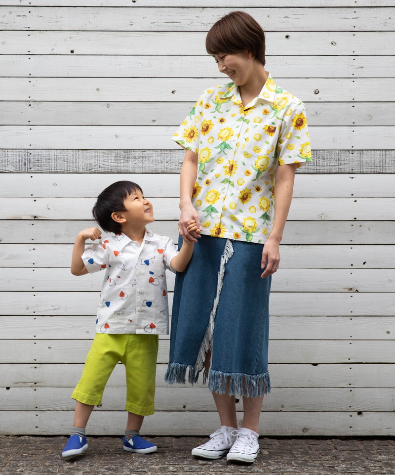 キッズシャツは、普段づかいにぴったりのカジュアルシャツ、夏にぴったりなオープンカラーのリラックスシャツの、2スタイルで展開。さらに、サイズも充実の6種展開。100cmから150cmまである。