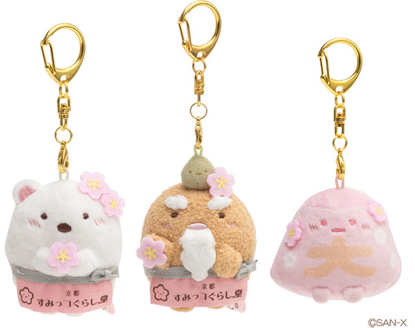 3種類が展開する「ぶらさげぬいぐるみ」では、しろくま、とん神様、やまという人気キャラクターたちが『銀閣寺 すみっコぐらし堂』らしい姿に変身。価格は、すべて各1,100円となっている。