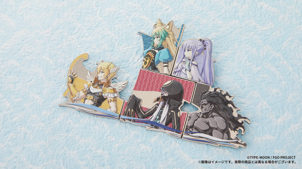 『Fate/Grand Order』に登場する、アルゴー号の乗員たちが描かれたメタルバッジ。5種のバッジをすべて集めて合わせると、船の形になる。