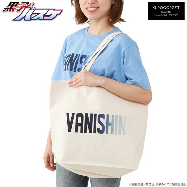 消える、見えなくなるというプレーの様子を表したVANISHというロゴを使用し、消える様子をグラデーションで表現しているところがポイント。黒子のイメージカラーアイテムは薄い水色が多いため、今回は前弾よりも濃い色味のTシャツカラーになっている。