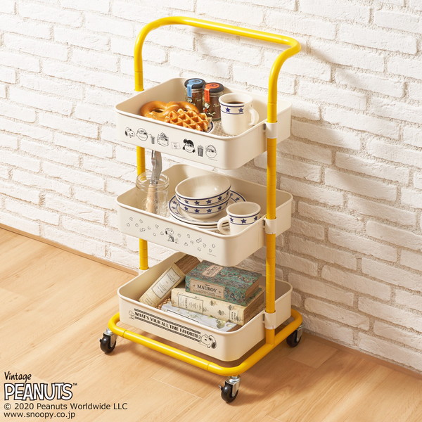 必要な場所に自由に移動できる3段カート、コンパクトにたためるエコバッグ、バリエーション豊富なケース・ポーチ類など、かわいくて実用的なアイテムが勢ぞろいしている。
