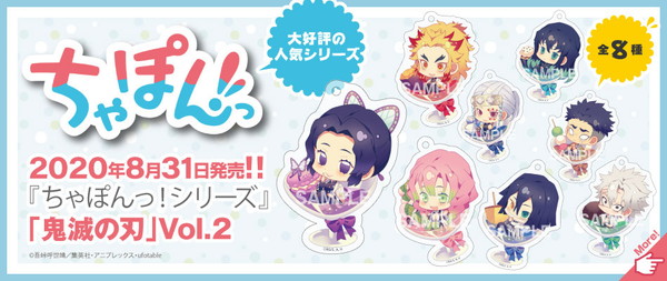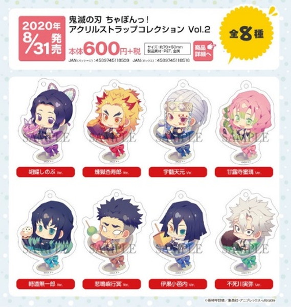 大人気のアクリルストラップシリーズである『ちゃぽんっ!シリーズ』に、『鬼滅の刃』が再登場。「鬼滅の刃 ちゃぽんっ!アクリルストラップコレクションVol.2」が発売される。