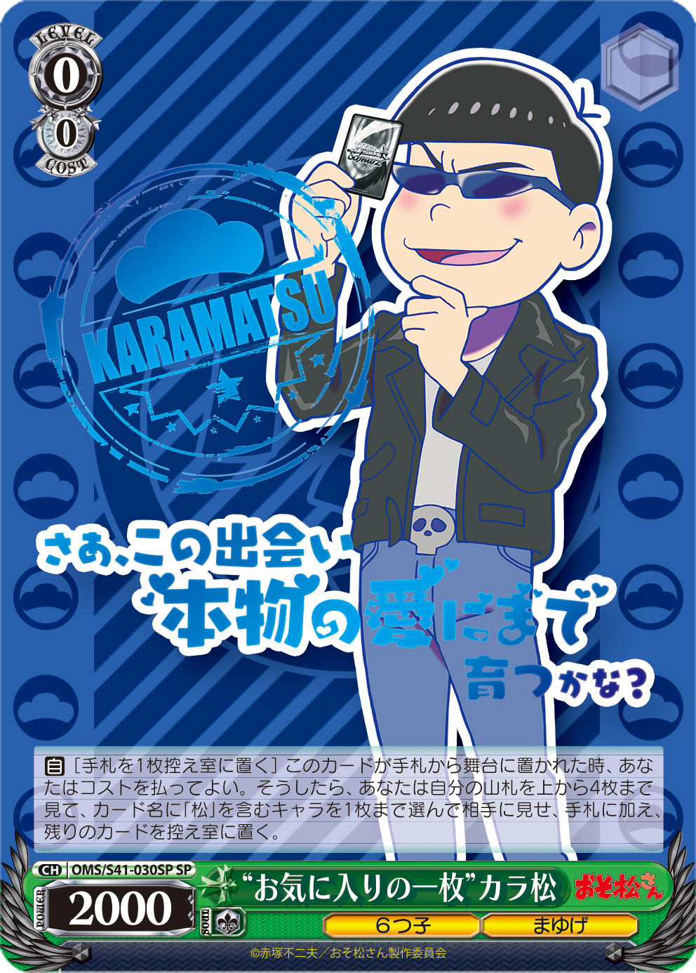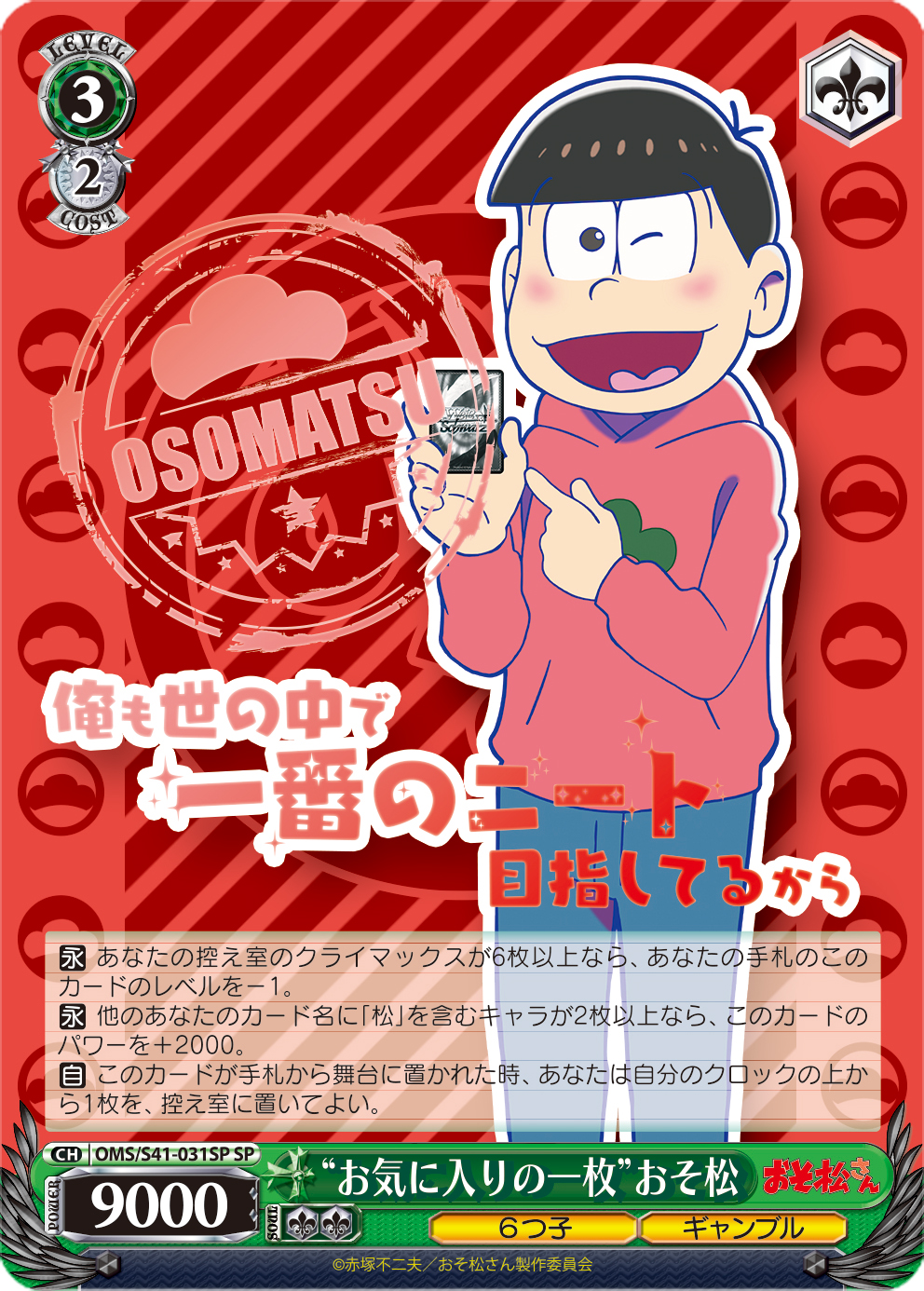 「ヴァイスシュヴァルツはじめ松セット『おそ松さん』」もしくは「ブースターパック『おそ松さん』」を2,000円以上購入ごとに「おそ松さんWSくじ」が1回できる。