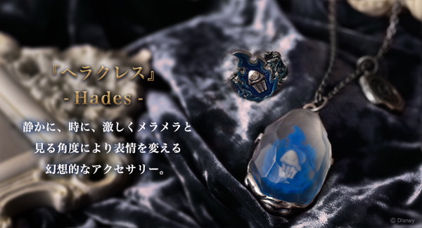 静かに、時に、激しくメラメラと青い炎を自由自在に操る死者の国の神“ハデス”。彼の衣装にあしらわれているドクロのモチーフを中心に青い炎でぐるりと囲まれたリングは、まさに彼の魔法そのもの。炎の濃淡が美しく表現されるよう計算つくされた繊細なデザインに注目して。