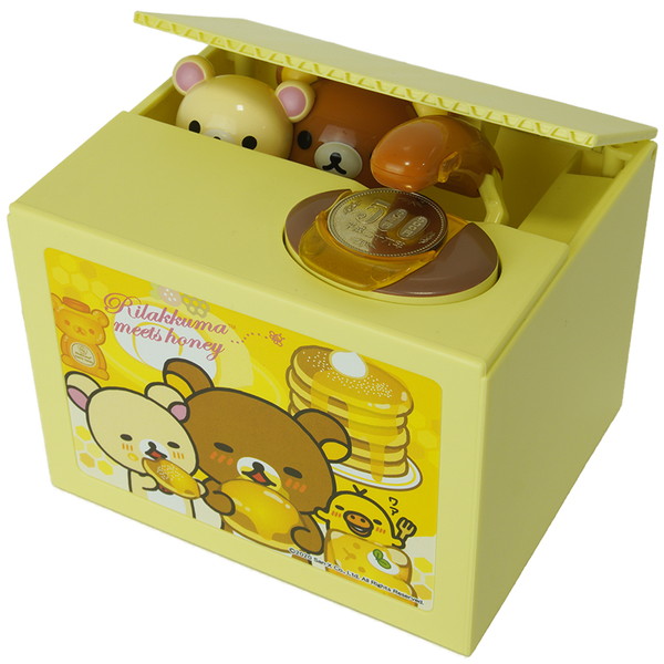 本商品では、はちみつのかかったパンケーキにコインを置いて上からタッチすると、リラックマとコリラックマがひょっこり覗き、中からリラックマの手が出てきてコインを取っていくという面白いギミックが。