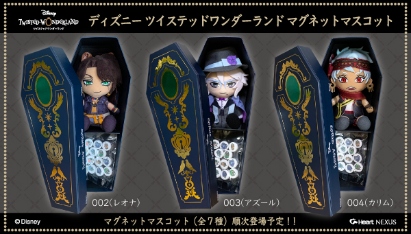 スマートフォンゲーム『ディズニー ツイステッドワンダーランド』より、サバナクロー寮・寮長の「レオナ・キングスカラー」、オクタヴィネル寮・寮長の「アズール・アーシェングロット」、スカラビア寮・寮長の「カリム・アルアジーム」のマスコット型マグネットとタブレット菓子をセットにした「ディズニー ツイステッドワンダーランド マグネットマスコット」が発売決定。バンダイ公式ショッピングサイト「プレミアムバンダイ」にて予約受付が開始となった。
