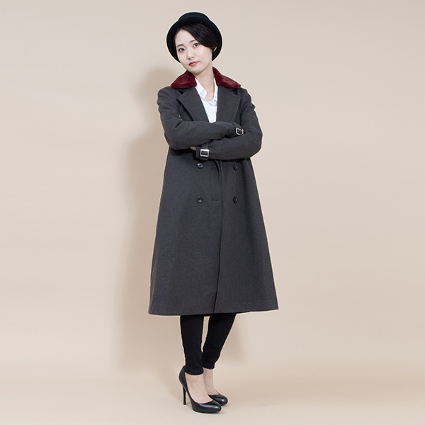 中原中也が作中で着⽤しているアウターをイメージしたチェスターコート。中也のように腕を通さず、肩掛けにしてスタイリングするのもオススメ。バイカラーが特徴的な襟元は、取り外しできるファー素材で再現。異素材MIXでトレンド感もバッチリ︕ チョーカーやタイをイメージしたカフスのデザインにもこだわりを忍ばせているという。