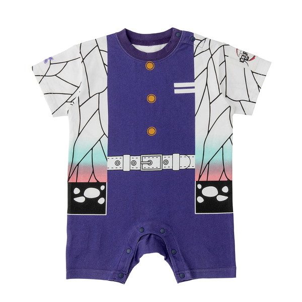 本商品は、TVアニメ『鬼滅の刃』のキャラクターのなりきりスタイ&カバーオールセット。「冨岡義勇」「胡蝶しのぶ」「煉獄杏寿郎」の隊服と羽織がカバーオールで再現された。右袖にはそれぞれの刀の鍔の可愛いワンポイント刺繍も。各キャラクターの有名なセリフがプリントされたスタイとセットに、なりきりを最大に楽しめる商品となっている。