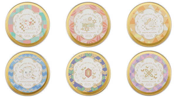 かわいい缶に入った各キャラクターをイメージした香りのハンドクリーム。炭治郎は背負っている箱をイメージしたひのきの香り、禰豆子はふんわり香るピーチの香り、善逸はすっきりとしたゆずの香り、伊之助はホワホワしちゃう?しゃぼんな香り、義勇はすっきりとしたソーダの香り、しのぶは華やかなブルーベリーの香り。