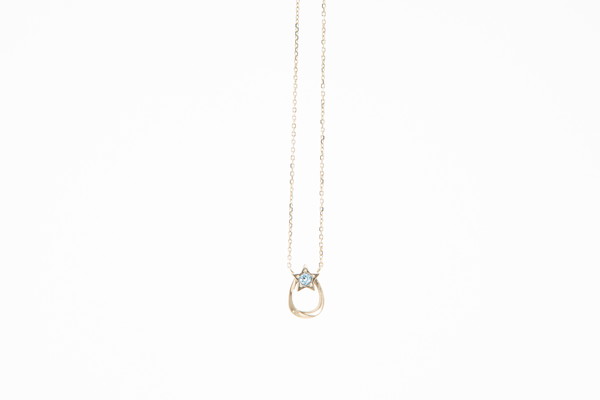 ⽇本をモチーフにしたネックレスは、桜の⽊の枝をイメージした緩やかなアーチライン上に桜の花をあしらった、ありそうでなかったデザイン。桜の花の中央には、⽇本の瞳の⾊をイメージしたストーンがキラリと輝く。肌に馴染む華奢なチェーンは、⼥性らしい可憐な印象をより引き⽴ててくれる。