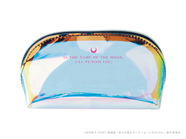 さらに全てのカラーを同時にご購入いただくとノベルティポーチがプレゼントされる。ポーチ表面には月のシルエットとともにスーパーセーラームーンの決め台詞「月にかわっておしおきよ!」の英文「IN THE NAME OF THE MOON, I‘LL PUNISH YOU !!」がデザインされ、裏面には劇場版「美少女戦士セーラームーンEternal」のロゴ入り。