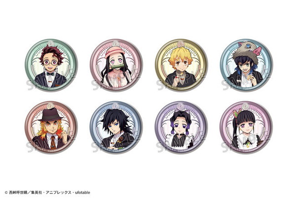 「和菓子バッグチャーム」をはじめとするコラボアクセサリーを身に着けた炭治郎たちの描き下ろしイラストを使用したランダム缶バッジ。