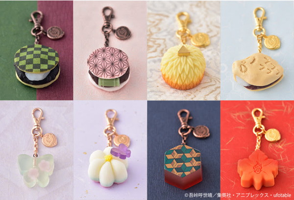 今回のコラボのためにufotableにより描き下ろされた竈門炭治郎、竈門禰豆子、我妻善逸、嘴平伊之助、冨岡義勇、煉獄杏寿郎、胡蝶しのぶ、栗花落カナヲの新規イラストを使用したアイテムをはじめ、『鬼滅の刃』の世界をアートのように美しい和菓子で表現した「Q-pot.」ならではの各種アクセサリーやチャームが展開。