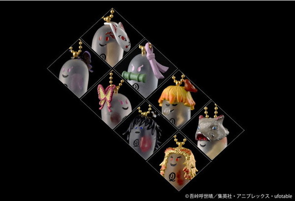 Q-pot.の人気キャラクター・食いしん坊のオバケが「鬼滅の刃」のキャラクターに扮し、登場。髪型、表情、お腹の中に忍ばせたアイテムで各キャラクターの世界観を表現した、遊び心溢れるユニークなオバケのランダムラバーストラップ。