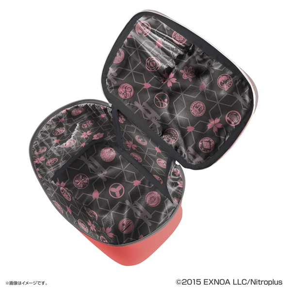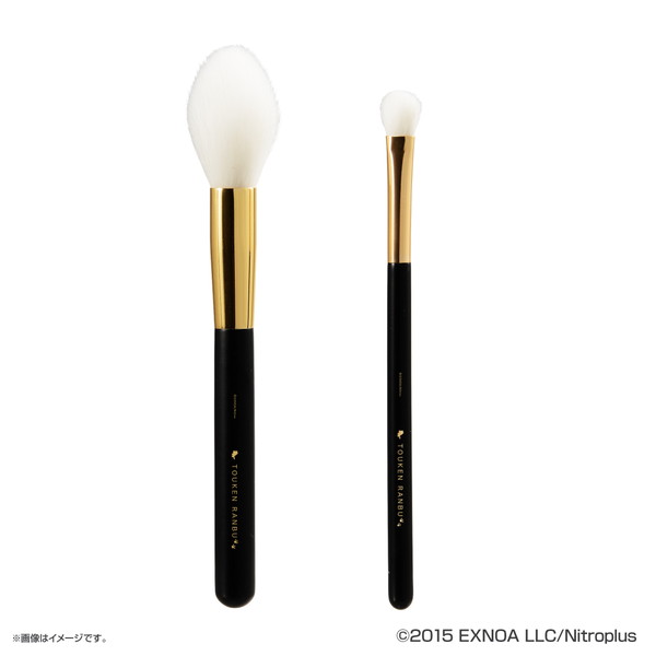 本商品は、PCブラウザ・スマホアプリゲーム『刀剣乱舞-ONLINE-』をイメージしたバニティポーチ、ハンドミラー、メイクブラシ2本のセット商品。バニティポーチは上蓋にブラシポケット・クリアポケット、ポーチ内部に2つのポケットを備えつけ、充実した収納仕様を実現。作品をイメージした華やかなデザインで、ポーチ内側には96振りの紋を入れた生地を採用された。