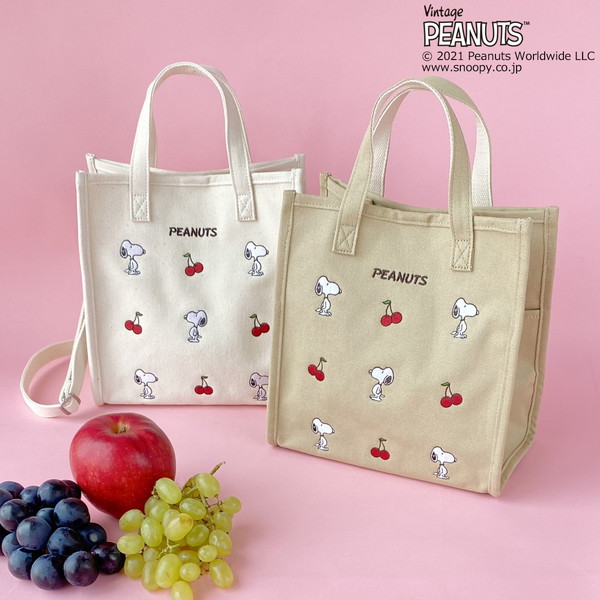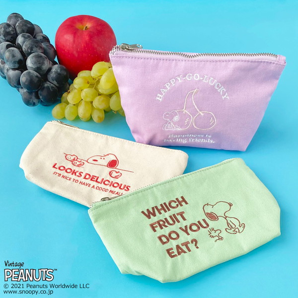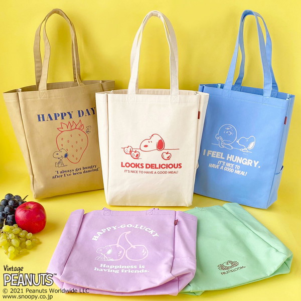 ラインアップは、 Tシャツ全8種、 トートバッグ全10種、 ポーチ全6種。スヌーピーと仲間たちのかわいいアートに、 フルーツオブザルームにちなんだストロベリー、 チェリーなどのフルーツモチーフをオンしたデザインも登場する。