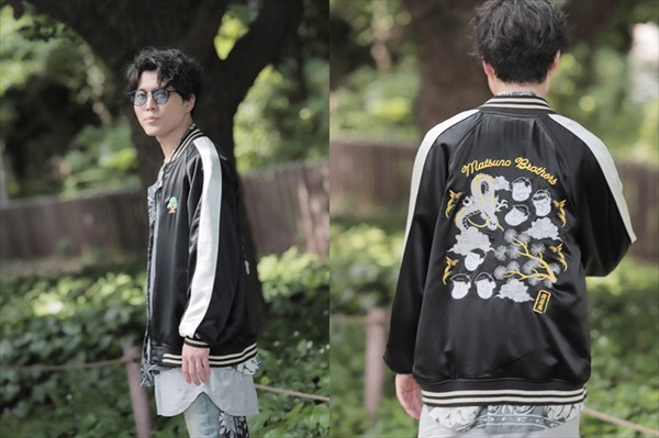 ▶刺繍:イラストレーター・Take氏描きおろしイラストをふんだんに使用し、龍とあわせたデザインを背面に刺繍しております。また、前面には松野家の象徴である「松」を刺繍しました!