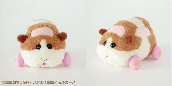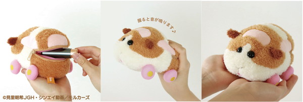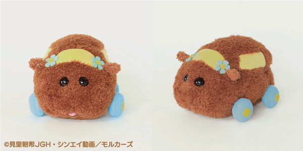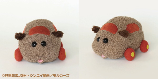 中に鳴き笛を入れ、軽く握ると音が鳴る。デザインは〈ポテト〉〈アビー〉〈シロモ〉〈テディ〉〈チョコ〉の5種類。ジオラマポーチは第一話の「渋滞は誰のせい?」のワンシーンをイメージしたデザインで、スライダー部分についているモルカーたちがファスナーを開閉するたびに道路上を走行する。家の中でもお出かけ中でも、モルカーたちの世界にたっぷり浸れる。