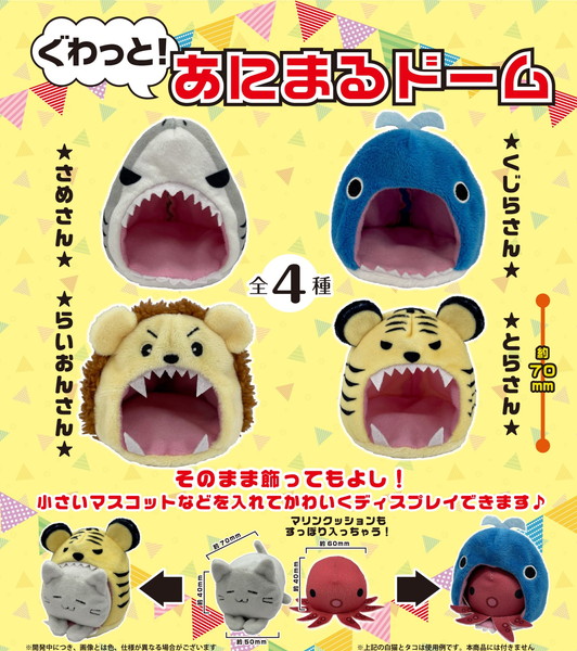 ミニフィギュアやお手玉サイズのぬいぐるみがすっぽり入るアニマルさんのドームが新登場。ぐわっと開いたお口の中に小さいマスコットなどを入れて楽しめる。遊び方無限大。