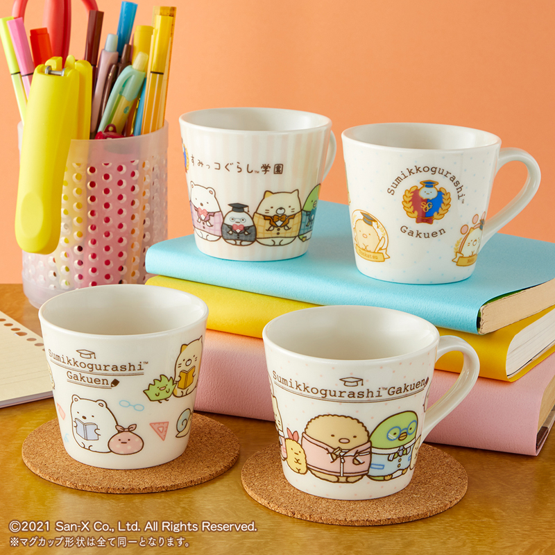 B賞からE賞は、「しろくま先生」「ぺんぎん?先生」「ねこ先生」「とかげ先生」のぬいぐるみをラインナップしました。約28cmの大きなサイズでボリューム感たっぷりです。F賞のマグカップは、休憩やお勉強のおともにも。デザインは4種類でお好きなものを選んでいただけます。