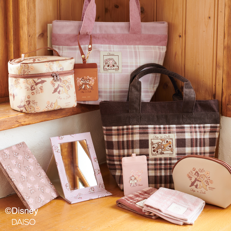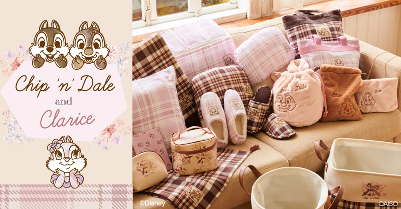 「チップとデール」の憧れのマドンナであるキャラクター「クラリス」がデザインされた商品も登場し、ボアなど季節感のある素材を使ったアイテムや温かみのあるチェック柄をベースとしたデザインで秋冬にぴったりのラインアップです。